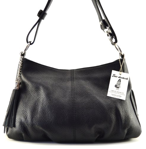 SAC DESTOCK - Sac à Main CUIR "Grainé" - Réf: LAGOS / Nouvelle Colllection / Promotion / Handbag Leather (NOIR)